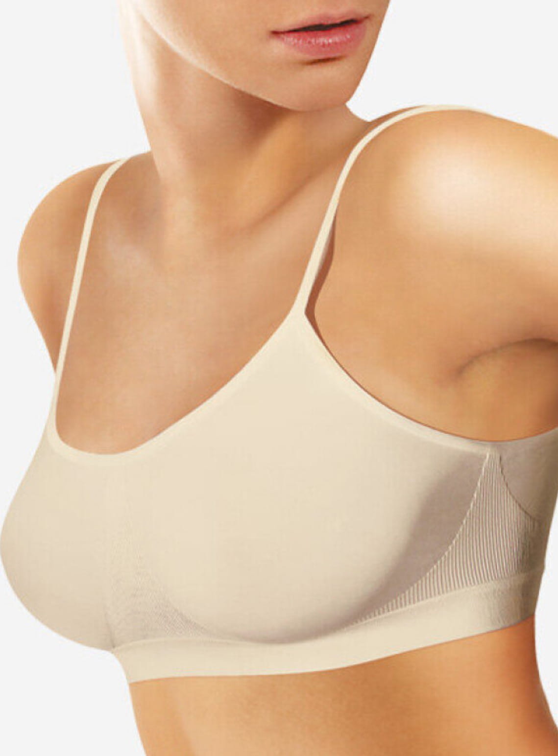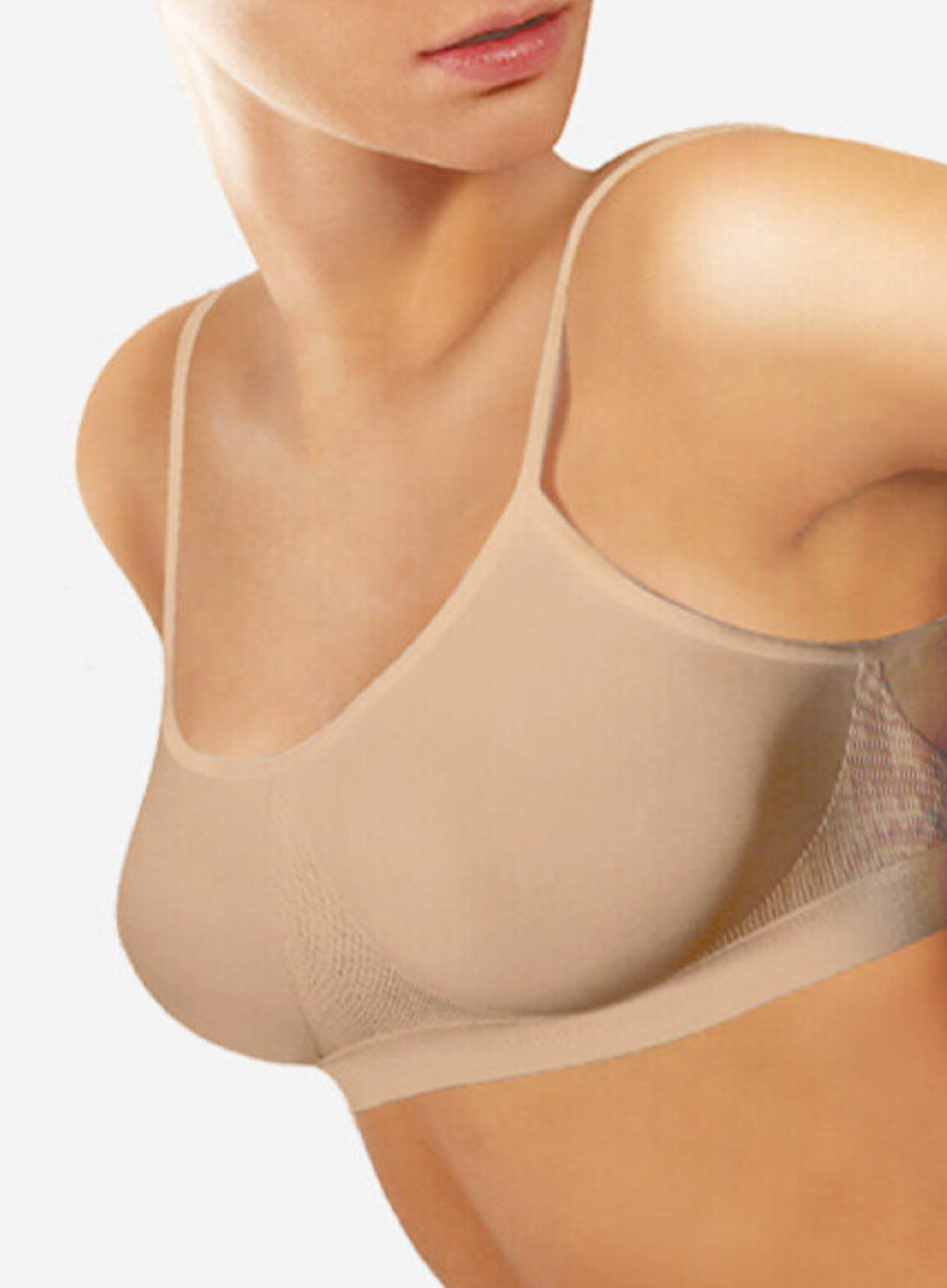 Brassiere, dzięki cienkim ramiączkom prezentuje się kobieco i subtelnie; wspaniale podkreśla nie tylko biust, ale i ramiona. Elastyczne panele utrzymują piersi w prawidłowej pozycji, co jest niezwykle ważne podczas każdej aktywności. Przewiewna i miękka mikrofibra jest delikatna dla skóry i zapewnia idealne odprowadzanie wilgoci.