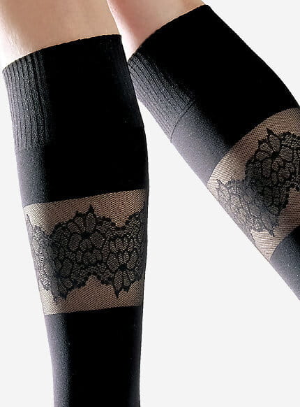Podkolanówki do szpilek, sandałków, a także do płaskich, eleganckich butów o męskich krojach od Lores warto mieć w swojej szafie nie tylko ze względu na ich oryginalny wygląd z ażurową wstawką, ale również z uwagi na wygodę ich noszenia i trwałość. Przede wszystkim nie uwierają w palcach i nie ściskają nadmiernie łydki, a jednocześnie nie zsuwają się i nie spadają z nogi – nawet podczas ich wielogodzinnego noszenia. Oprócz tego podkolanówki ze wzorem od Lores zachowują swój kształt na długo (nawet po wielokrotnym praniu) i są odporne na uszkodzenia mechaniczne czy „puszczanie oczek”. Czego chcieć więcej?