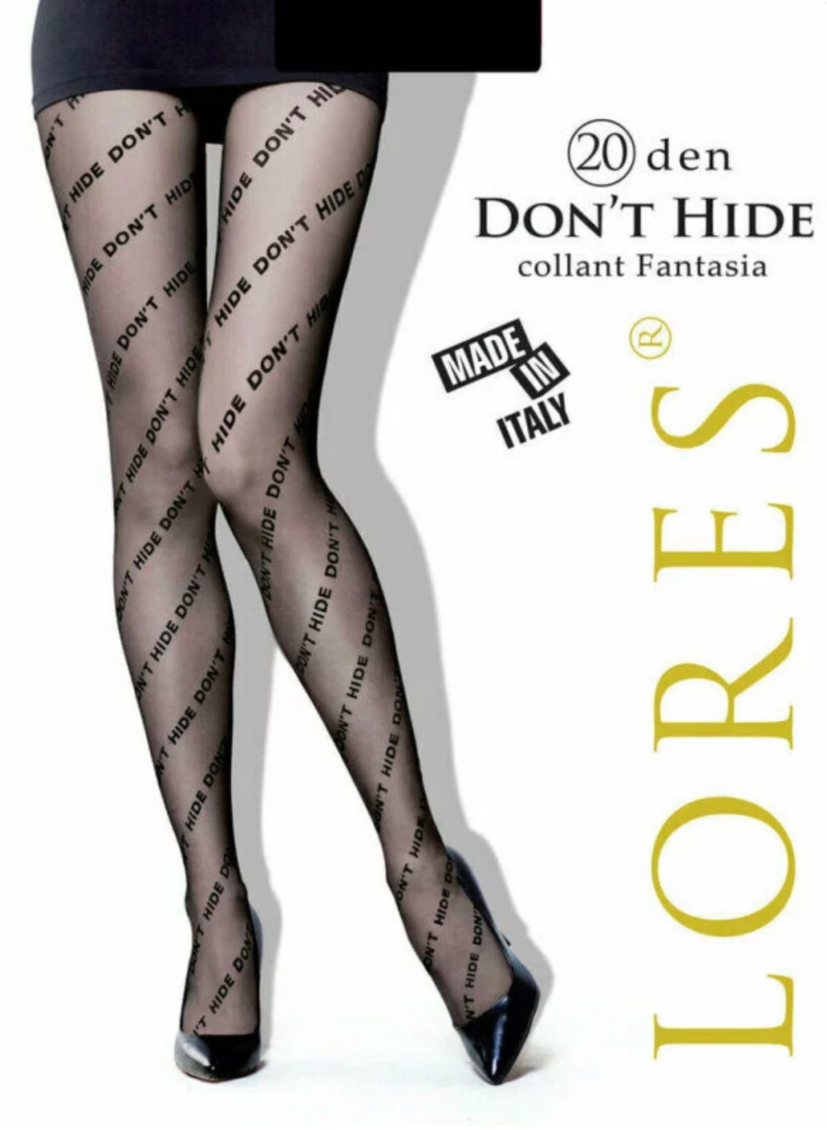 Wzorzyste rajstopy z napisami od Lores to wyjątkowy dodatek – jesteśmy przekonani, że znalezienie podobnej propozycji w ofercie innych marek może stanowić nie lada wyzwanie! Chcemy, aby przekaz, który płynie z napisów umieszczonych na tym modelu – DON’T HIDE – pozostał z Tobą na dłużej i sprawił, że nie będziesz już ukrywać ani swoich nóg, ani… własnego stylu! Deseń umieszczony na tym dodatku ma dodać Ci pewności siebie i sprawić, byś w każdej stylizacji (i sytuacji) czuła się komfortowo – zwłaszcza dzięki temu, co masz na sobie!
