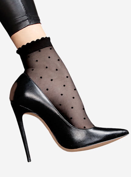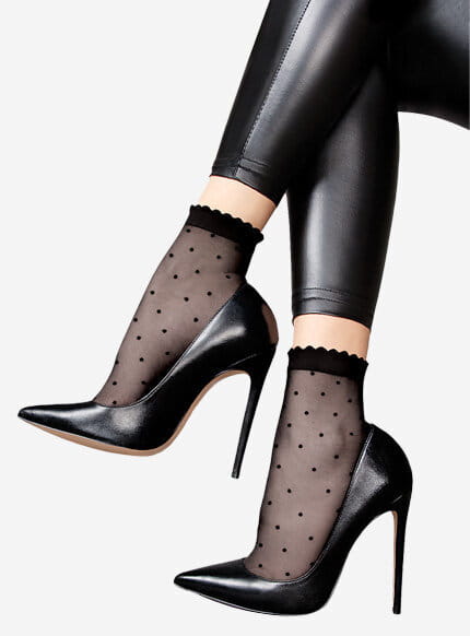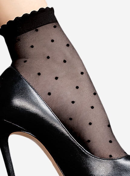Delikatne i kobiece skarpetki w kropki od Lores to subtelny dodatek, podkreślający niemal każdą stylizację. Otulają stopy delikatną mgiełką i – w zależności od Twojego stylu – mogą wyglądać zadziornie, elegancko lub romantycznie.