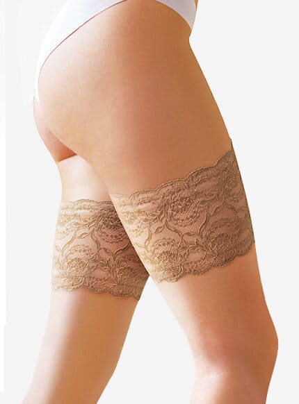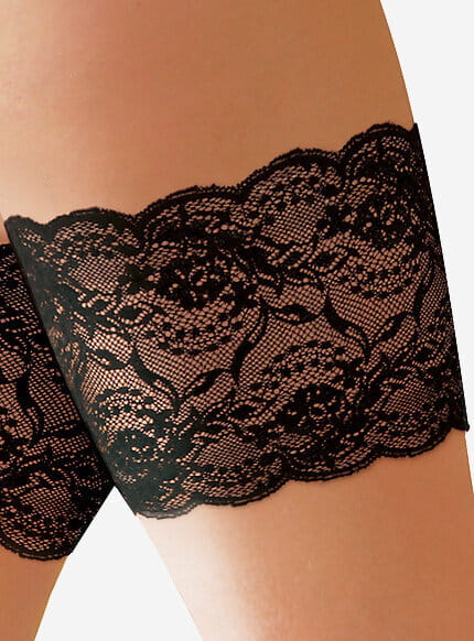 Opaski na uda FRAGILITA wykonane są z szykownej koronki, która przywodzi na myśl wykończenie zmysłowych kobiecych pończoch. Dzięki temu nawet jeśli fragment opaski wysunie się spod ubrania, nie będziesz się czuła skrępowana. Sercem opasek są jednak ukryte pod spodem podwójne, silikonowe paski w górnej i dolnej części, które utrzymują je na skórze bez ryzyka przesuwania czy rolowania. Możesz im zaufać nawet podczas największych upałów.