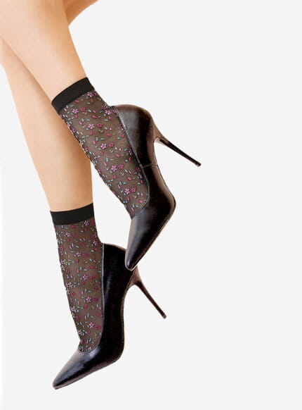 To idealne skarpetki do szpilek – sprawdzą się jednak również do delikatnych sandałków, jak i do sneakersów. Ich delikatny deseń sprawia, że można wystylizować je na wiele sposobów i okazji. Materiał doskonale przylega do stopy, a ściągacz nie uciska, jednocześnie zapewniając komfort noszenia i doskonałe utrzymanie skarpetki na wysokości kostki.