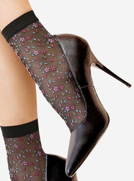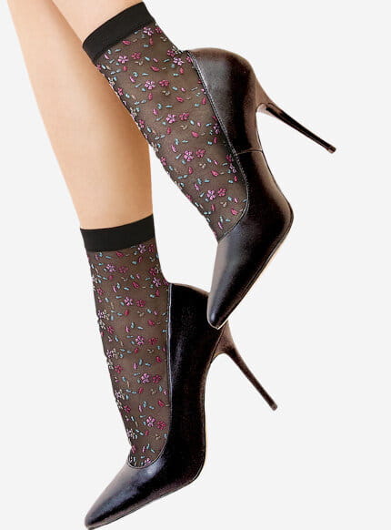 Nasza nowa odsłona skarpetek rajstopowych w kwiatki z pewnością przypadnie do gustu romantyczkom i amatorkom stylu boho – te delikatne skarpetki we wzory przywodzą na myśl letnią łąkę, pikniki pod gołym niebem i cudowny zapach świeżych, polnych kwiatów. Jeśli chcesz, by w Twojej garderobie zapanowała wiosna, koniecznie uzupełnij ją o ten model!